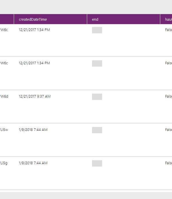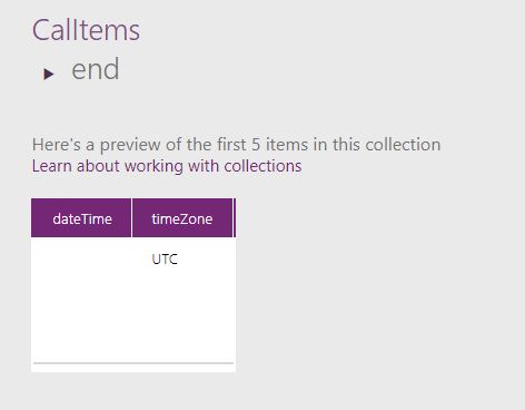 …or so I thought. Because when I tried to filter the items by date to have a gallery per day, I found that it wasn’t returning start or end date. With PowerApps now, you can view a collection so I had a look at the one I was returning.